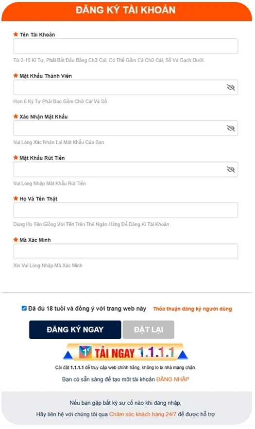 Một biểu mẫu đăng ký sẽ hiện ra. Bạn cần điền đầy đủ và chính xác các thông tin sau: